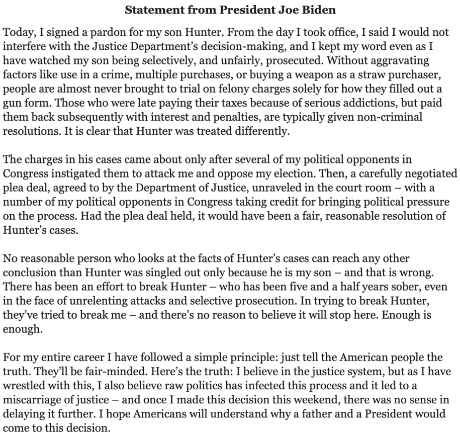President Joe Biden is pardoning his son Hunter, despite Biden and the White House repeatedly denying he would do so.