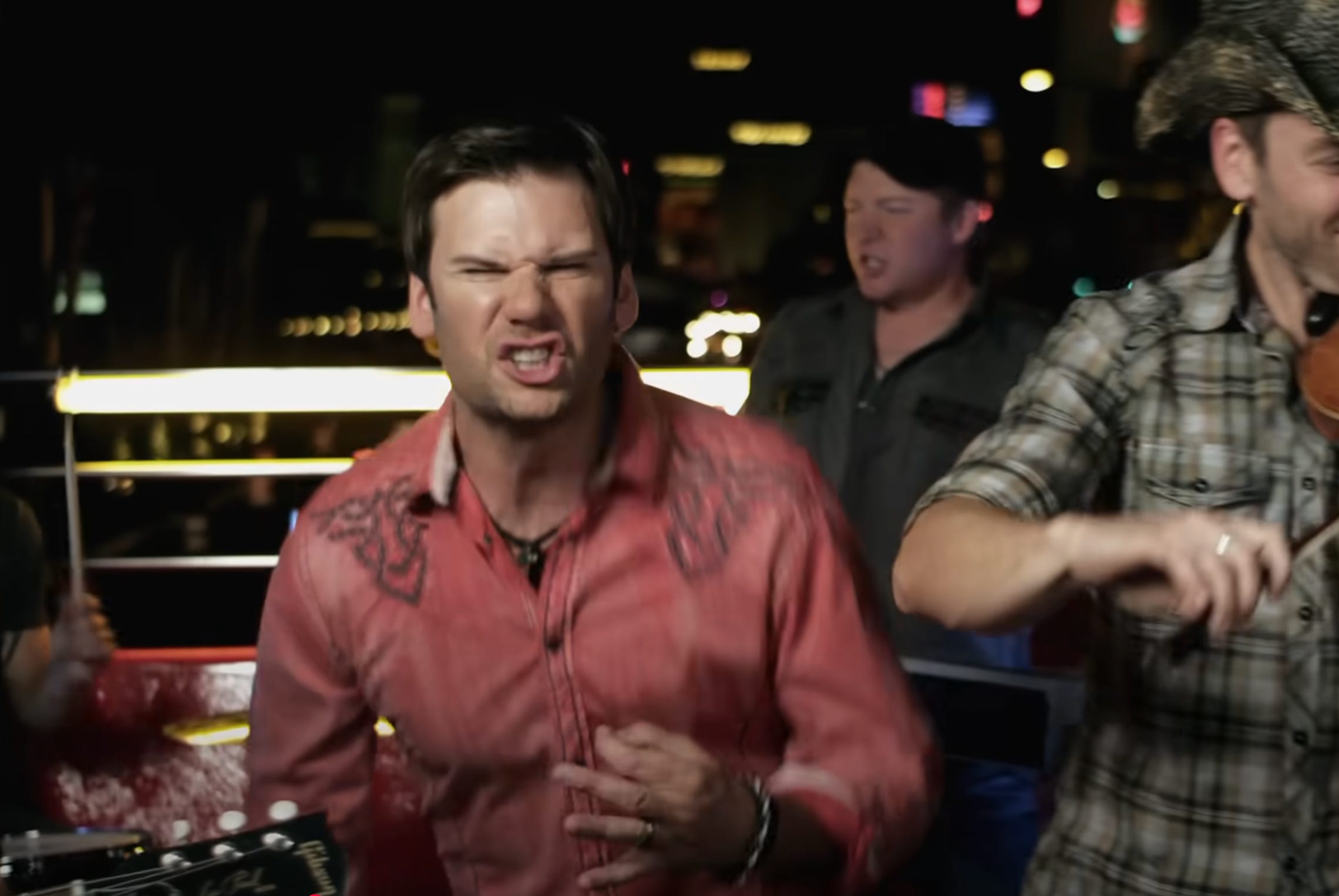 0:40 Seconds: “Diablo” (devil) neon sign, and devil horns gesture below: