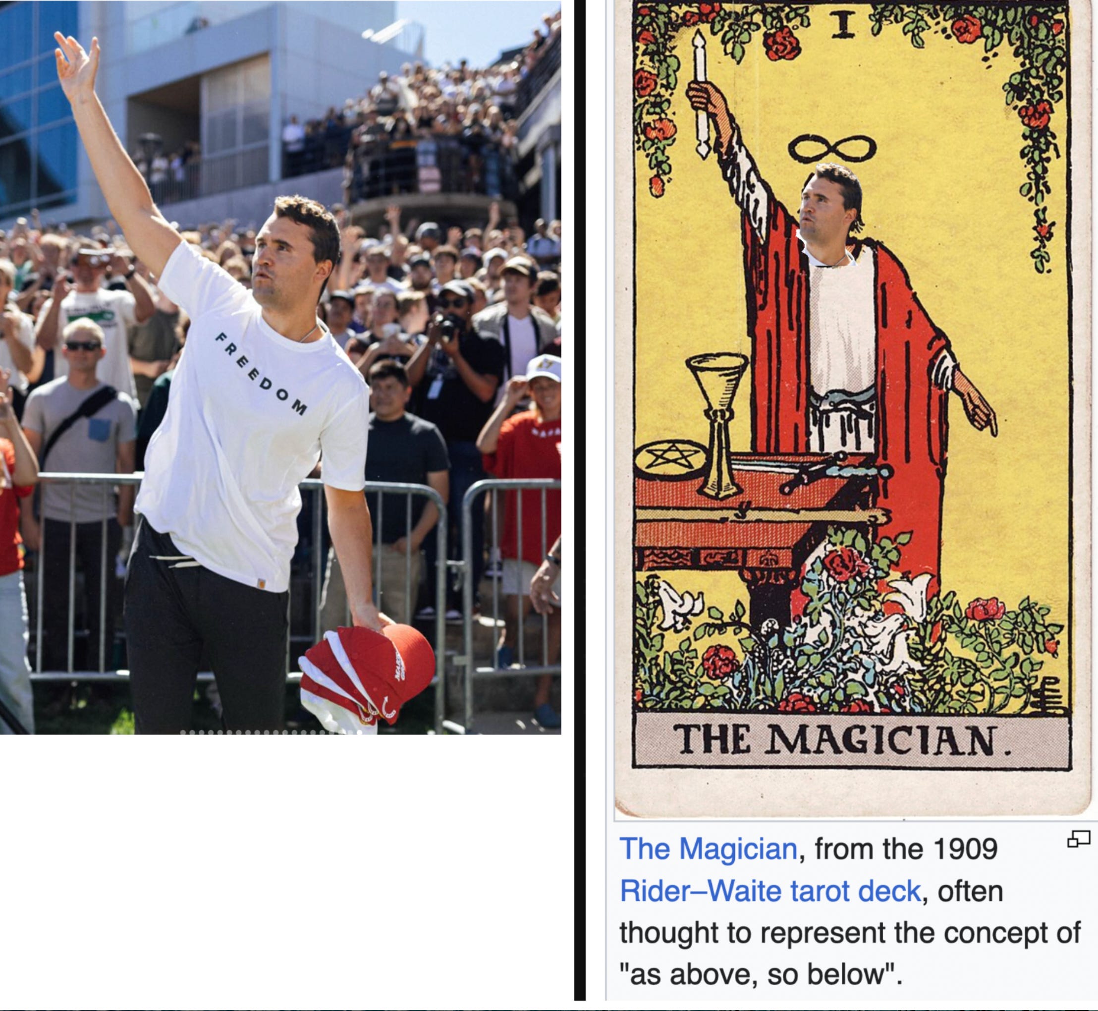 Here’s another behind-the-scenes video, where we are told that “Erika and TYLER are ziplining tonight…” I’ve done lots of coverage about the TYLERS in this Charlie Kirk magic show. Tyler the first witness (last name sounds like “get-a-gun”); Tyler the alleged shooter; Tyler the Turning Point executive; and of course Tyler being the name for the Freemason who keeps the secrets of the lodge.