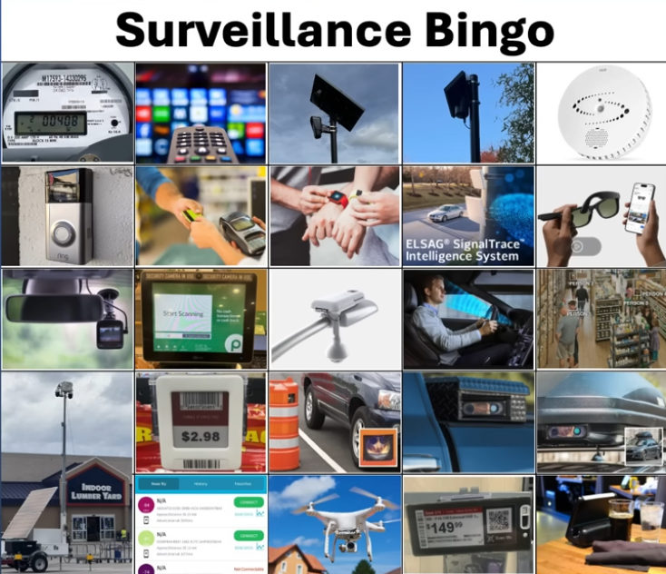 In this video, Dr. Jon Padfield gives a fast, practical tour of the surveillance infrastructure hiding in plain sight—and introduces a game you can play to start noticing it: Surveillance Bingo. We’ll cover everything from smart meters and license plate readers (including hidden deployments) to device “signal tracing,” video doorbells, smart TVs that capture what’s on your screen, AI microphones, Halo restroom sensors, AI glasses, smart streetlights, mobile camera trailers, dashcams, connected cars, and in-store tracking via electronic shelf labels and self-checkout.